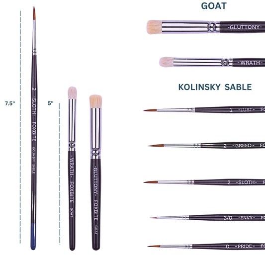 "3-Piece Kolinsky Sable Brush Set for Miniature Painting – FOXBITE Seven Deadly Sins""