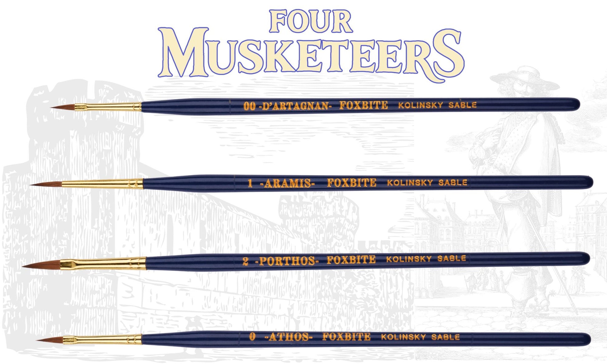 Cuatro Mosqueteros FOXBITE Juego de Pinceles Kolinsky Sable para Pintar Miniaturas Piezas de Modelismo Pincel de Pintura de Detalles Finos Kit de Pintura en Miniatura Mini Pinturas Acrílicas para Warhammer